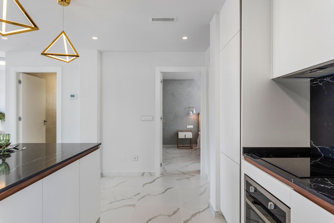 The 92 m² property features a spacious, bright living room connected to a modern open-plan kitchen designed for functionality and aesthetics. Three bedrooms and two elegant bathrooms provide comfort and privacy for the entire family. The large terrace, accessible from the living room, is perfect for relaxing and enjoying panoramic views of the famous Torrevieja lagoons.