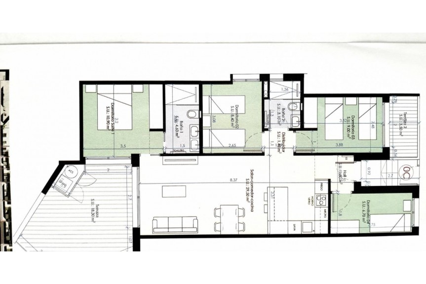We are pleased to present this exceptional apartment in a prime location. This spacious four-bedroom apartment with a total area of 75 m² is located on the ground floor. The apartment features four bedrooms, two bathrooms, including one ensuite, and a luxurious fully equipped American kitchen with all necessary appliances, including a dishwasher. The apartment boasts a large 21.80 m² balcony, oriented to the southwest, offering stunning views and optimal sunlight throughout the day.