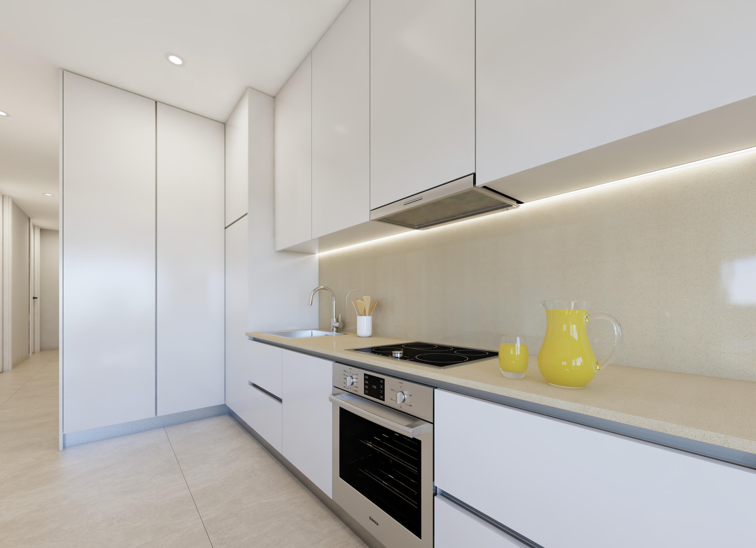 Every apartment at Olas Building is finished with meticulous attention to detail and equipped with high-quality air conditioning and an advanced home automation system, allowing control over lighting, temperature, and security, ensuring unparalleled comfort and energy efficiency. The kitchens are fully equipped with elegant, top-tier appliances, including an oven, dishwasher, fridge-freezer, extractor hood, and induction hob, creating the perfect environment for meal preparation and social gatherings.