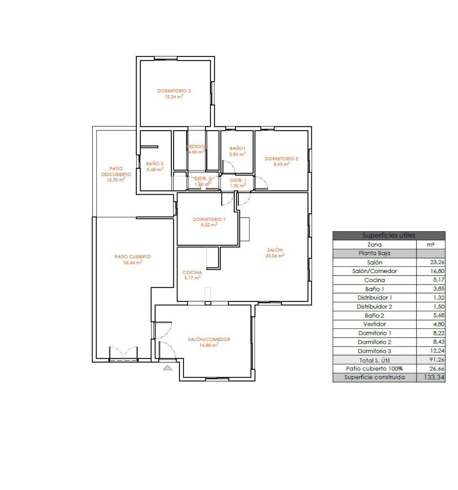 Dom o powierzchni 133 m² usytuowany jest na imponującej działce o wielkości 1220 m², co gwarantuje przestrzeń, komfort oraz ciszę. Willa została zaprojektowana w klasycznym stylu śródziemnomorskim, który harmonijnie łączy się z otaczającą naturą. Wnętrze obejmuje trzy przestronne sypialnie oraz dwie funkcjonalne łazienki, co czyni tę nieruchomość idealną dla rodzin lub osób poszukujących przestrzeni do relaksu.