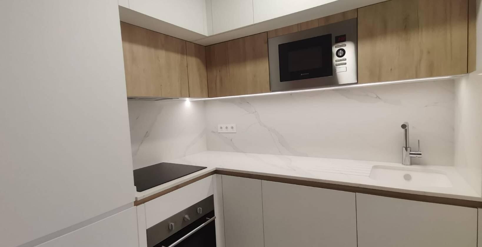 Apartament znajduje się na pierwszym piętrze nowoczesnego budynku z windą i oferuje 58 m² powierzchni zabudowy. Wnętrze zostało zaprojektowane z myślą o komforcie i funkcjonalności, a jego układ obejmuje dwie przestronne sypialnie, dwie nowoczesne łazienki oraz jasny salon z otwartą kuchnią w pełni wyposażoną w sprzęt AGD. Całość sprzedawana jest w standardzie umeblowanym i gotowym do natychmiastowego zamieszkania, z klimatyzacją, ogrzewaniem oraz drzwiami antywłamaniowymi.
